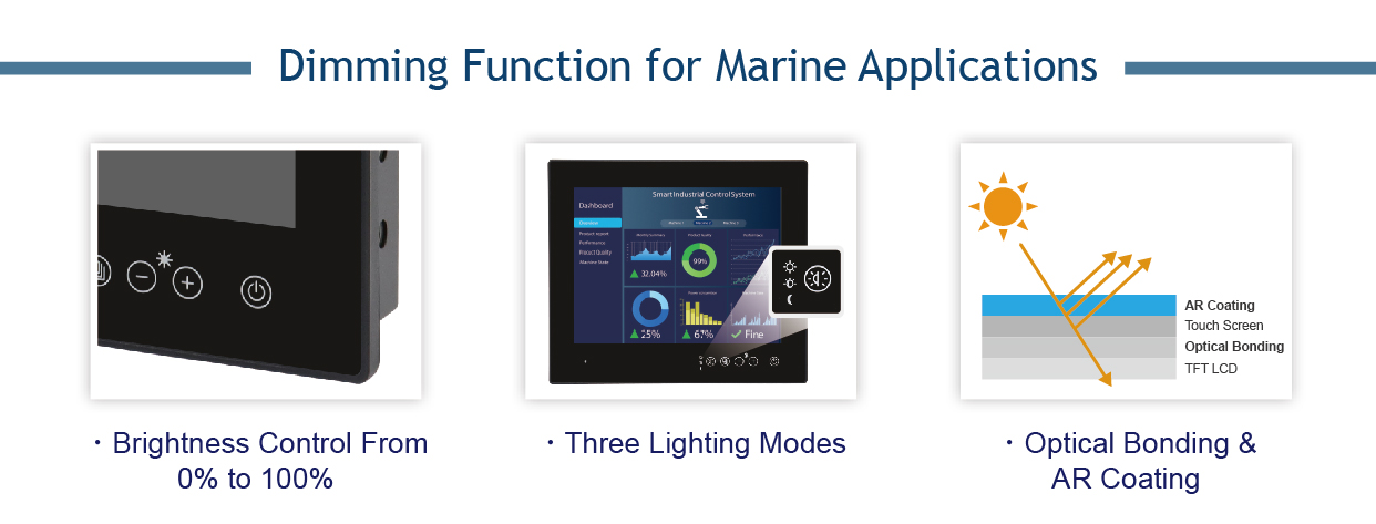 In the vast expanse of the ocean, lighting conditions undergo substantial changes between day and night, making lighting control vital for vessel facilities. The ViKING series offers support for brightness adjustment from 0% to 100%, along with AR coating, optical bonding, and three lighting modes tailored for daytime, dusk, and nighttime, ensuring optimal readability of information at all times.